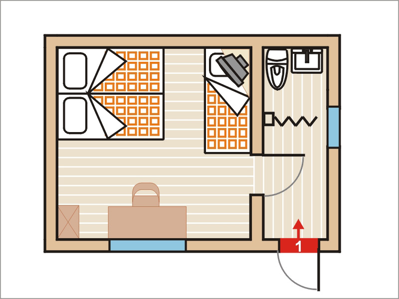 1 Doppelbett + 1 Einzelbett.